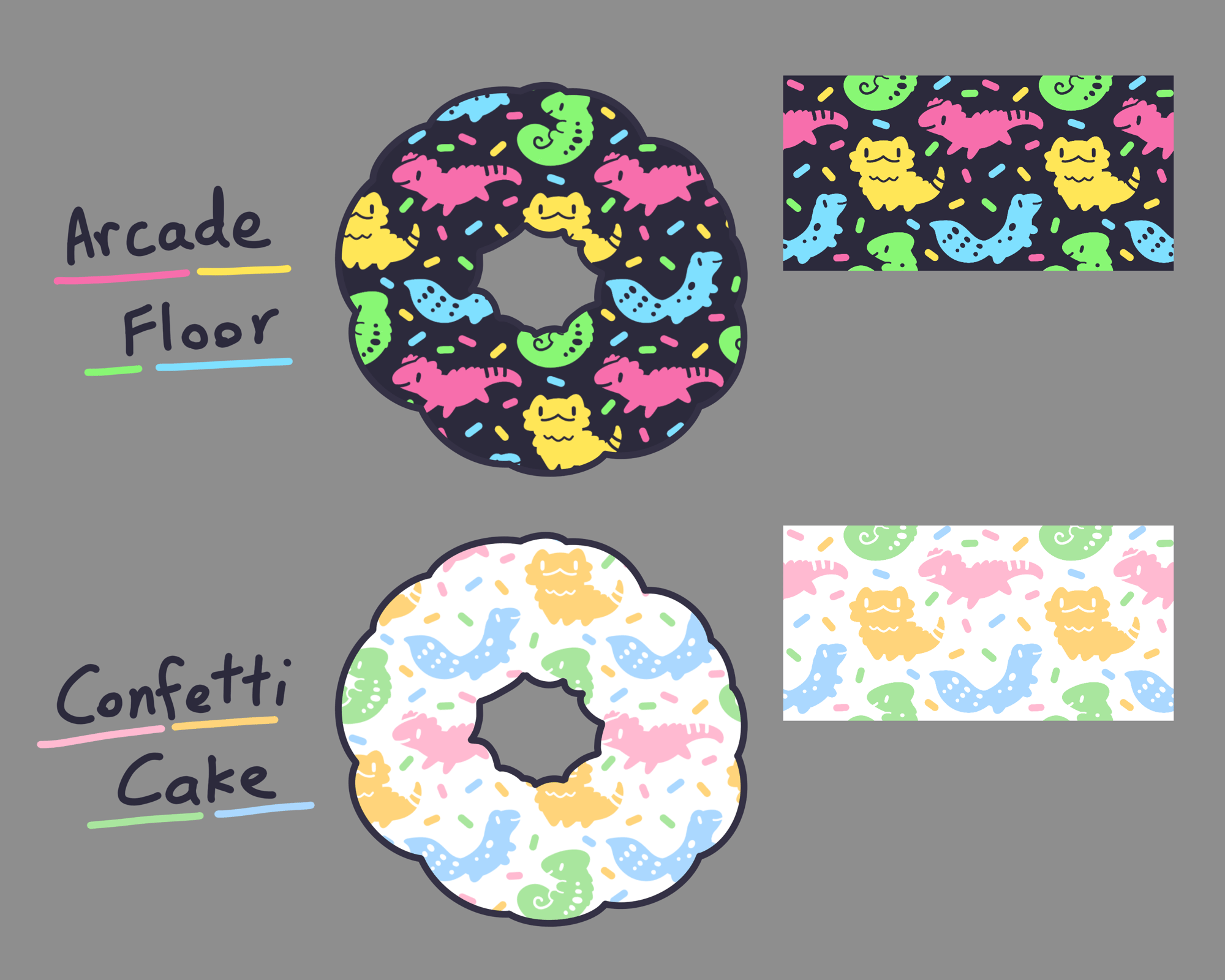 ☆ Choose from one of two designs: Arcade Floor (black) and Confetti Cake (white)